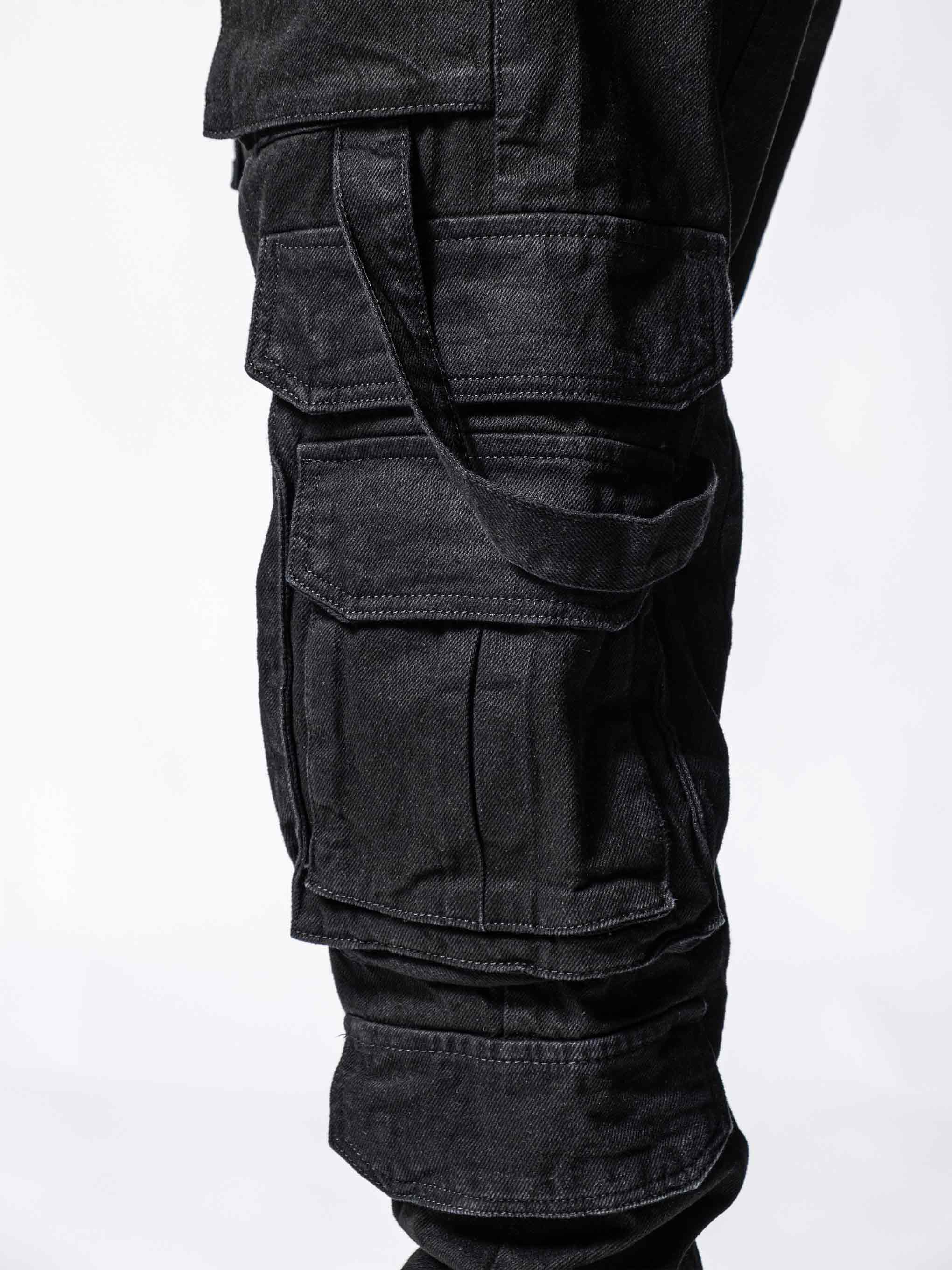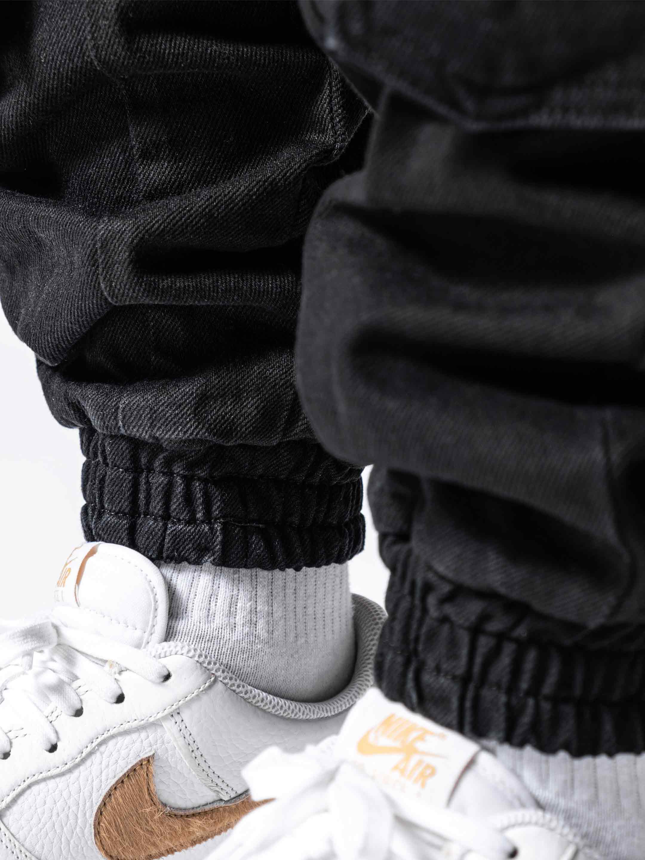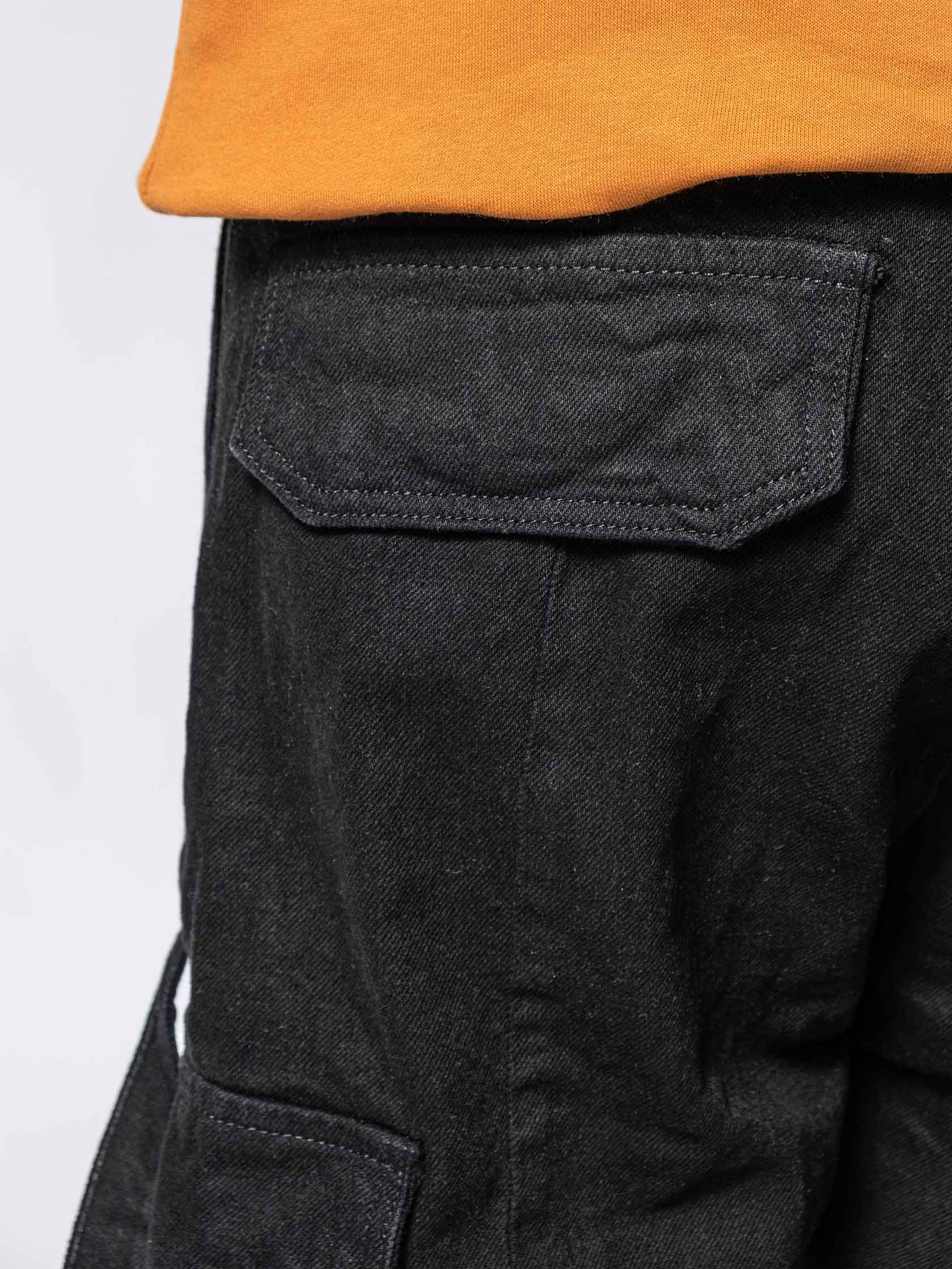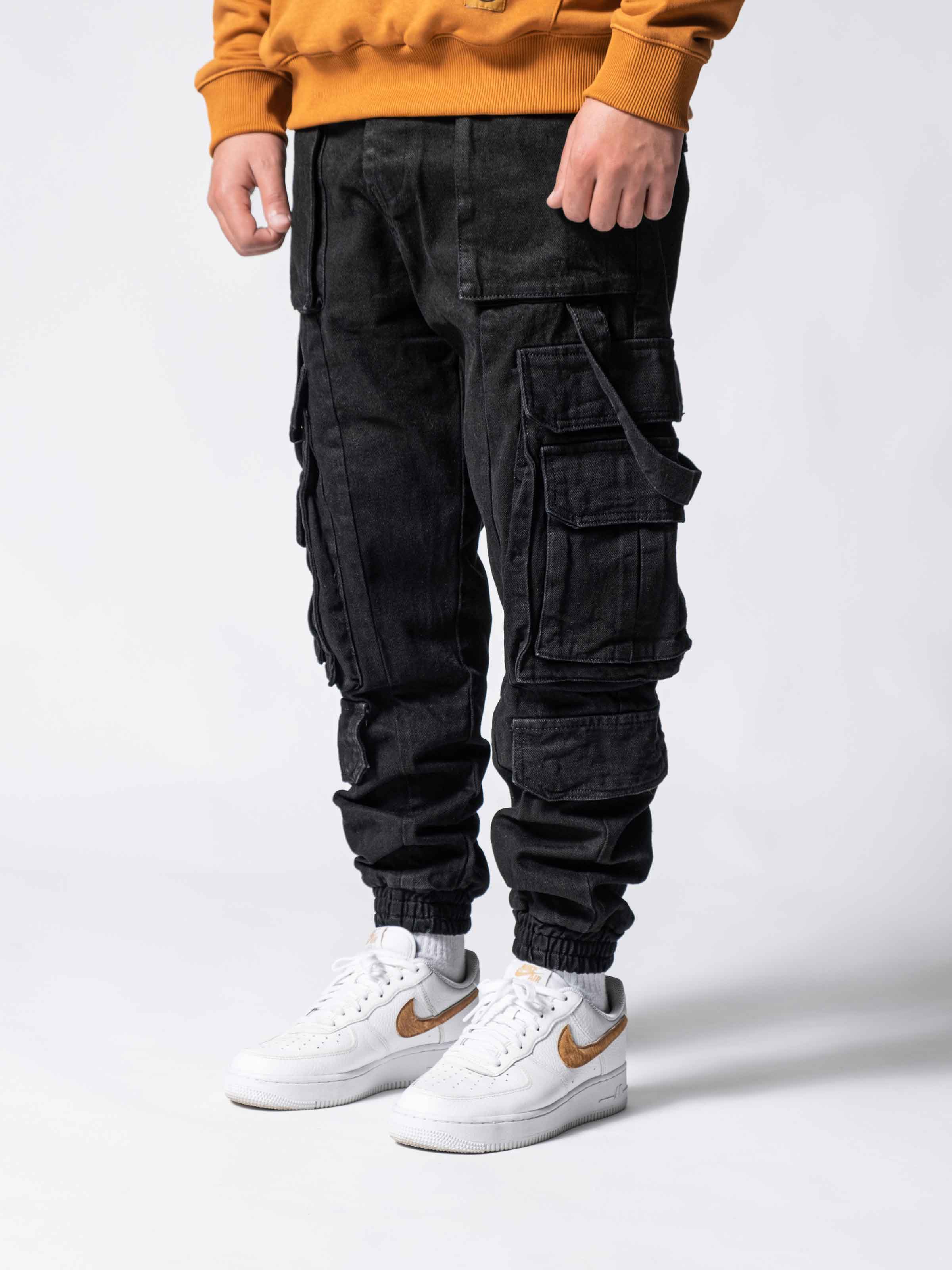 Blackish Cargo Pants is unique cargo denim jeans with many details and specializations; It is slim-fit denim, but it gets skinnier through ankles. Ankles and the waist are elasticized.