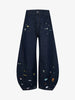 • Design Elements: Colorful embroidered graphics, playful patterns, wide-leg silhouette