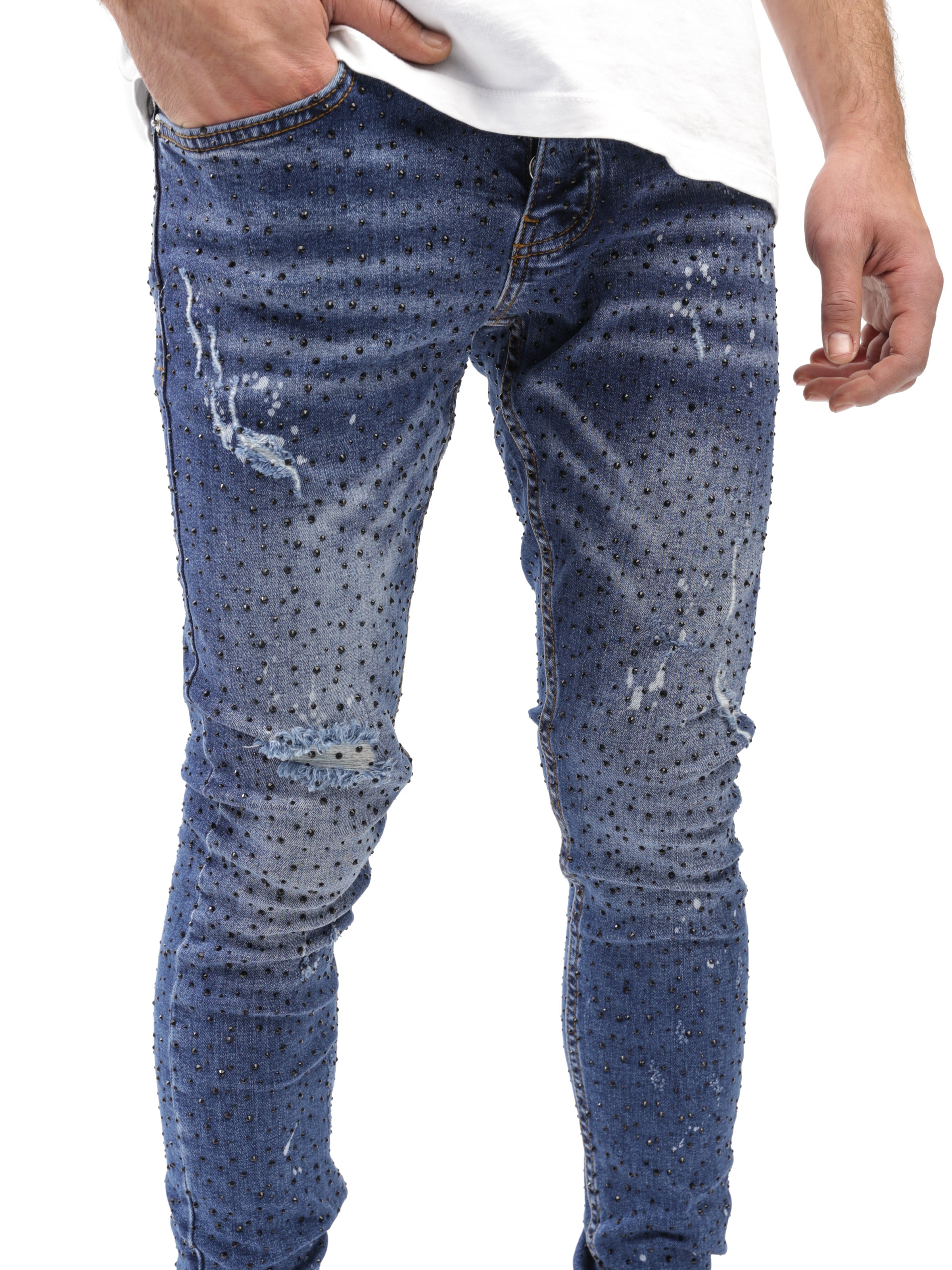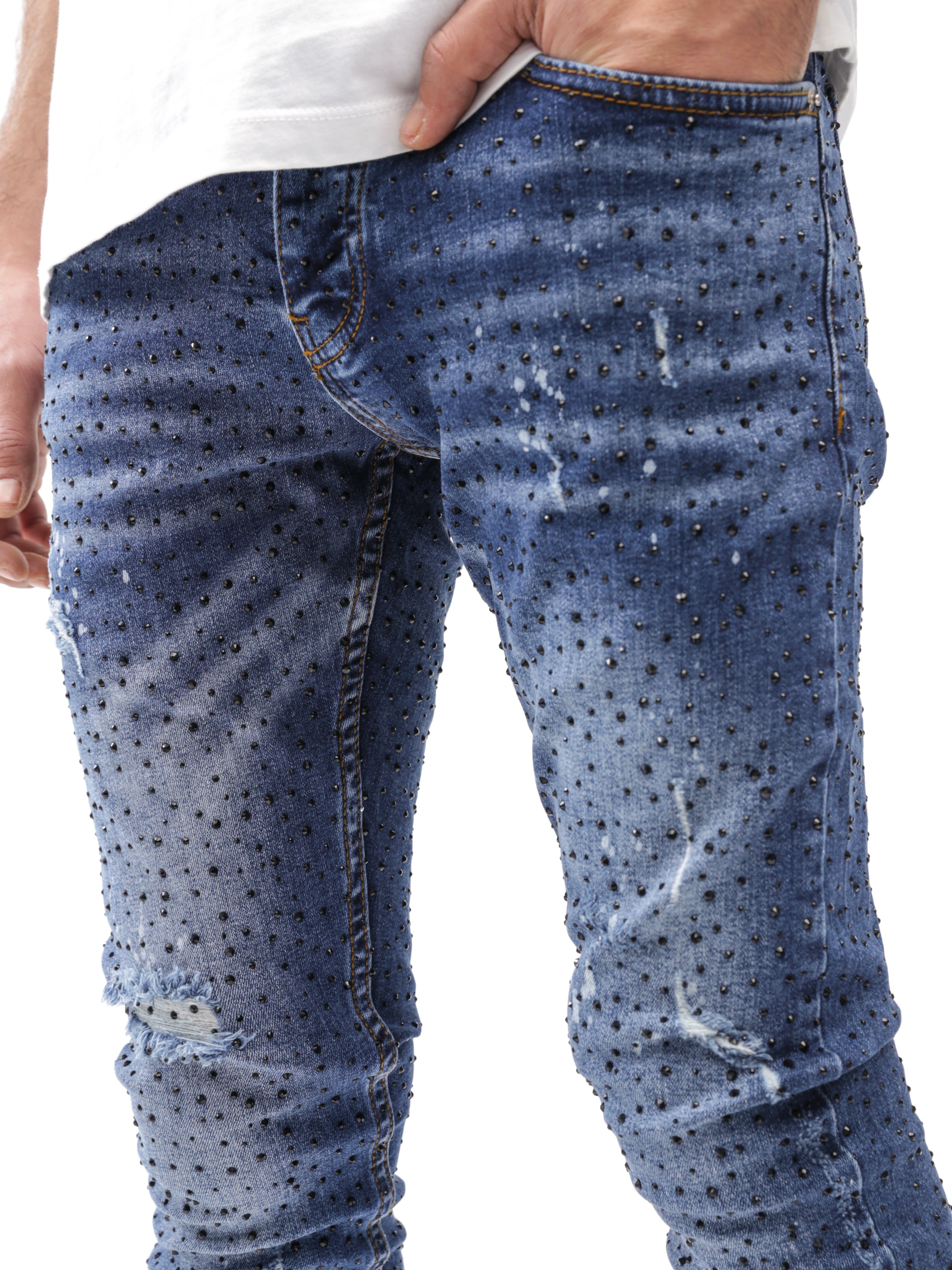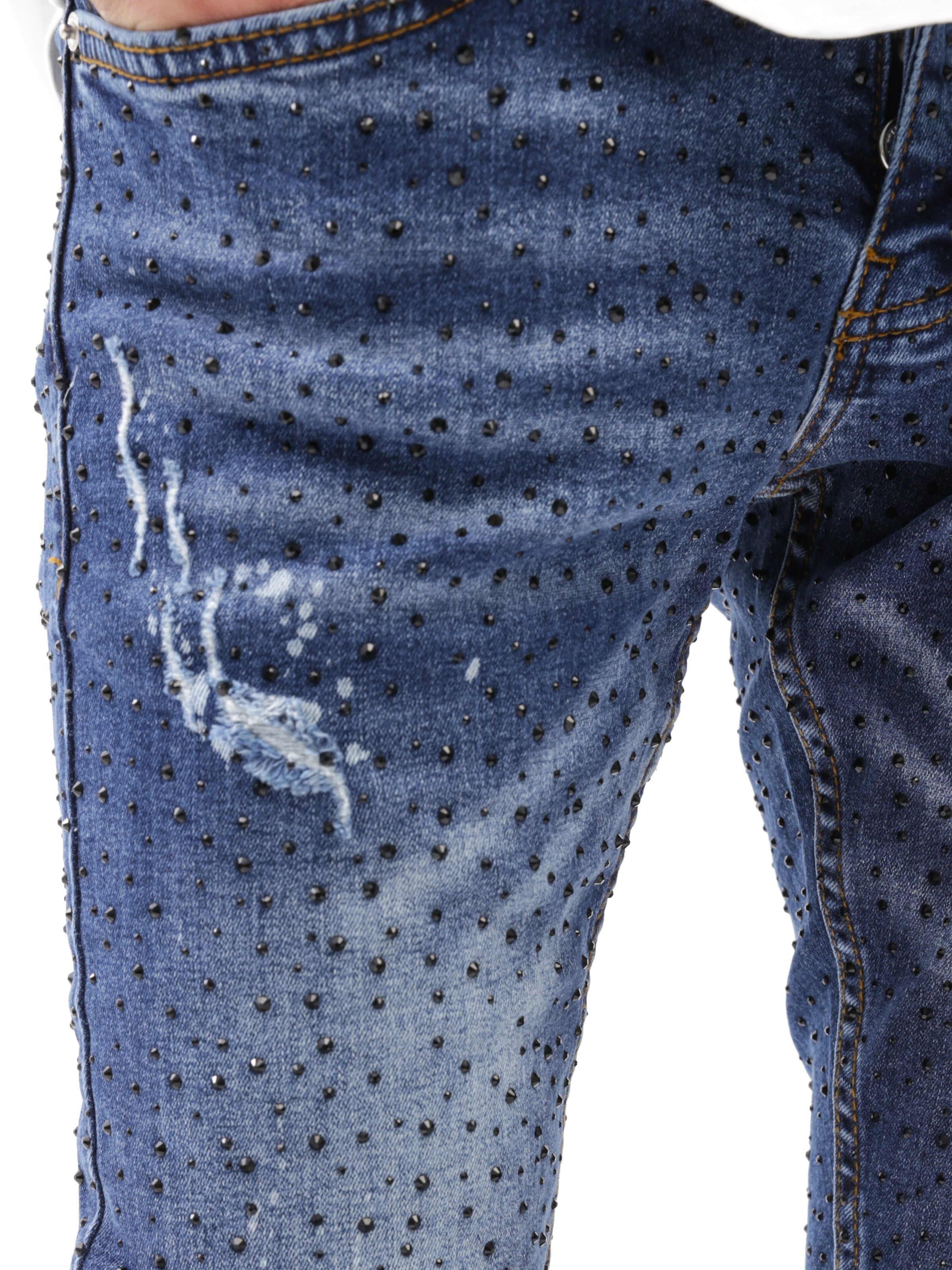 Full Rhinestone Blue Jeans