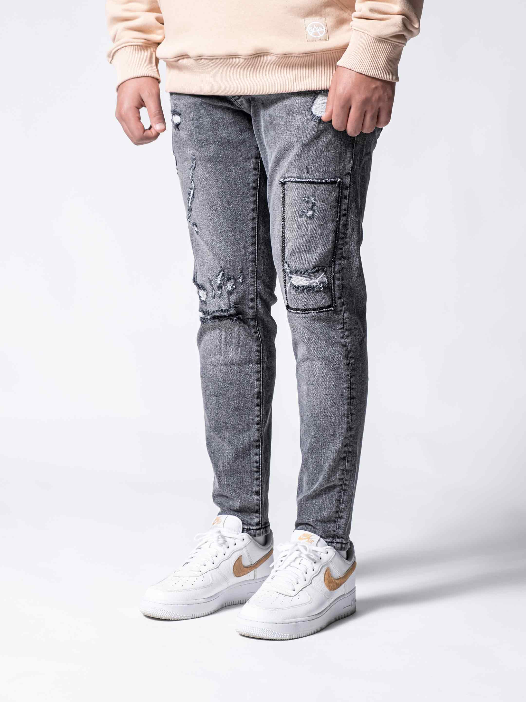 Gashed Jeans are made from high-quality stretchy and stonewashed denim fabric. It is designed to create a rebellious vibe. We put extra stitch details and rips on the front of the legs.