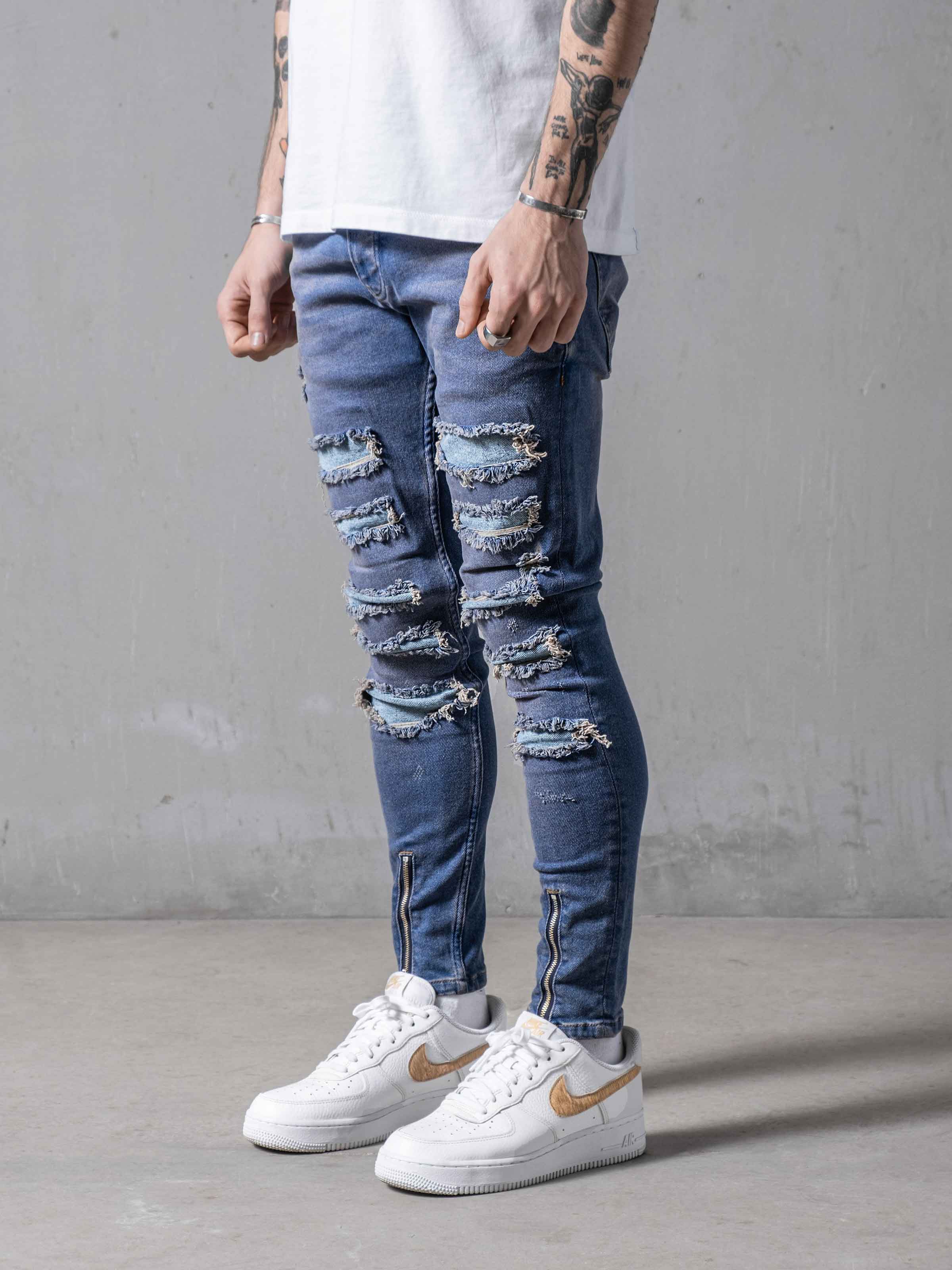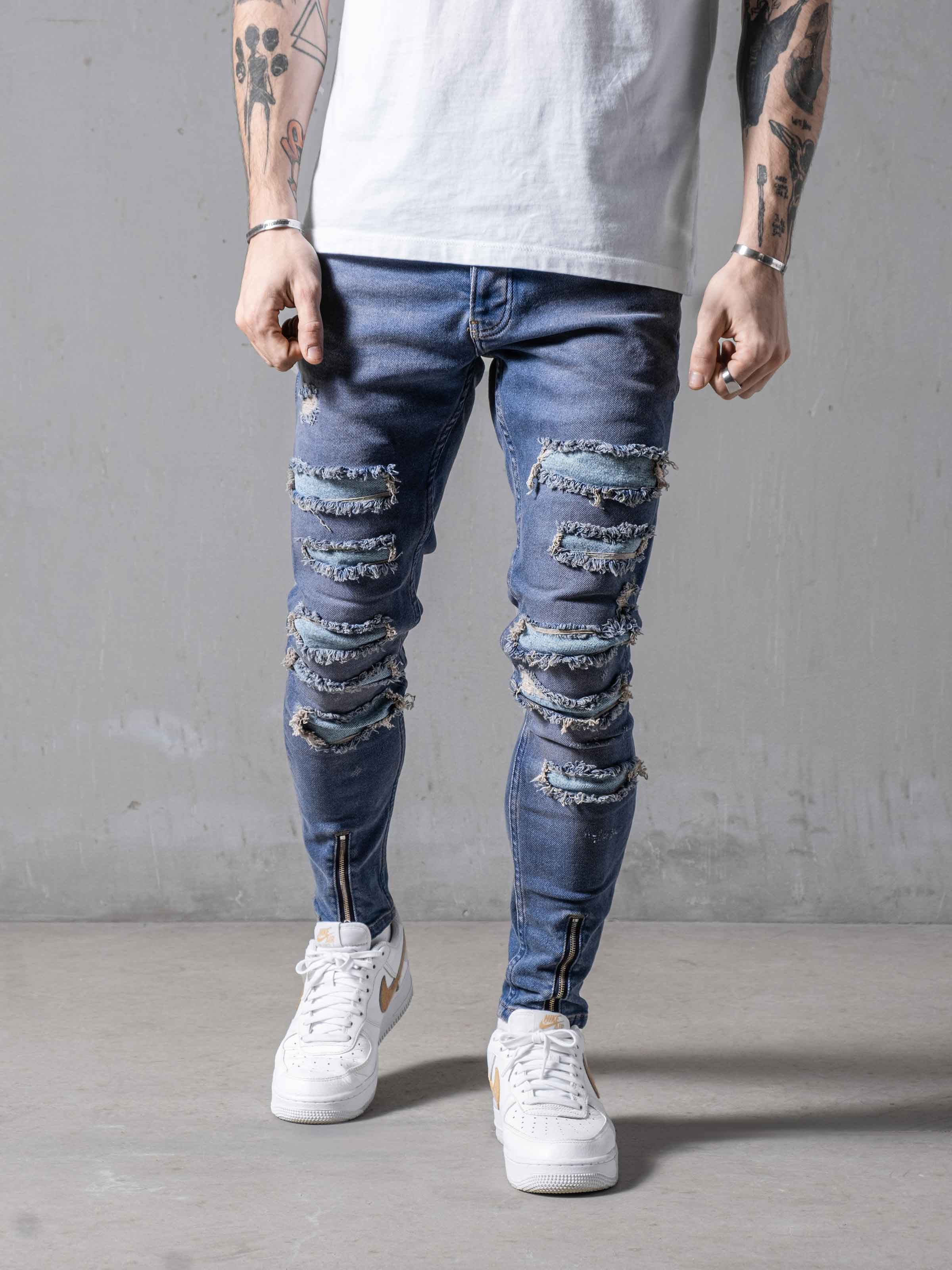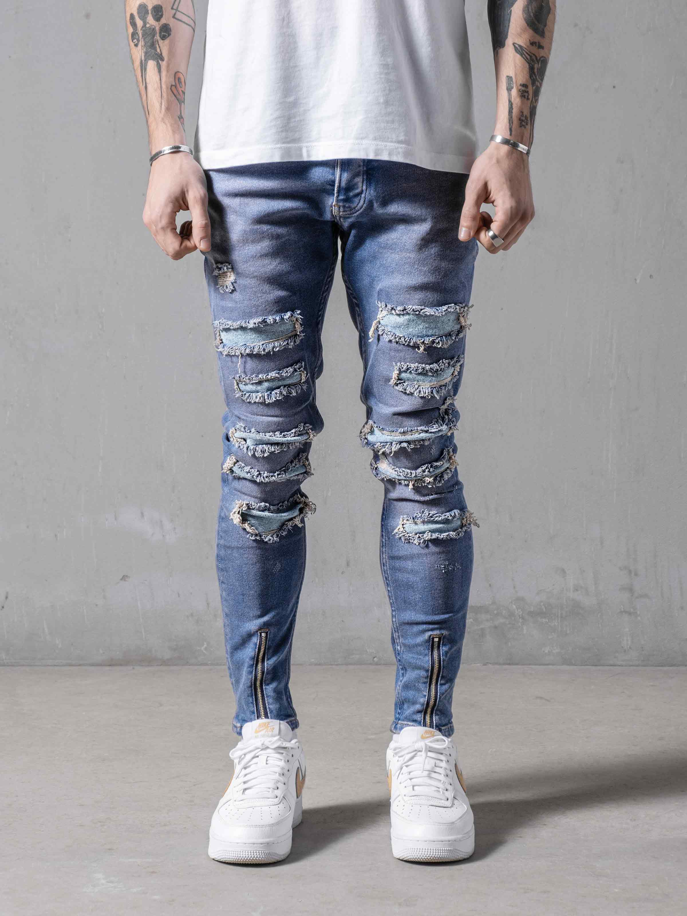 Inside Out Jeans are made from high-quality stretchy denim fabric. It is skinny-fit denim jeans and it gets skinnier through to ankles with zipper details on both legs. The main specs of these jeans are rips and repairs in front of both legs.