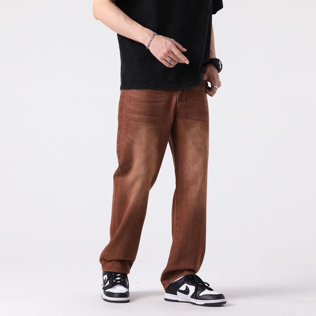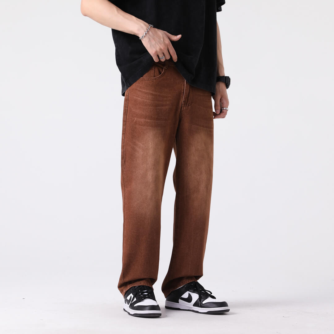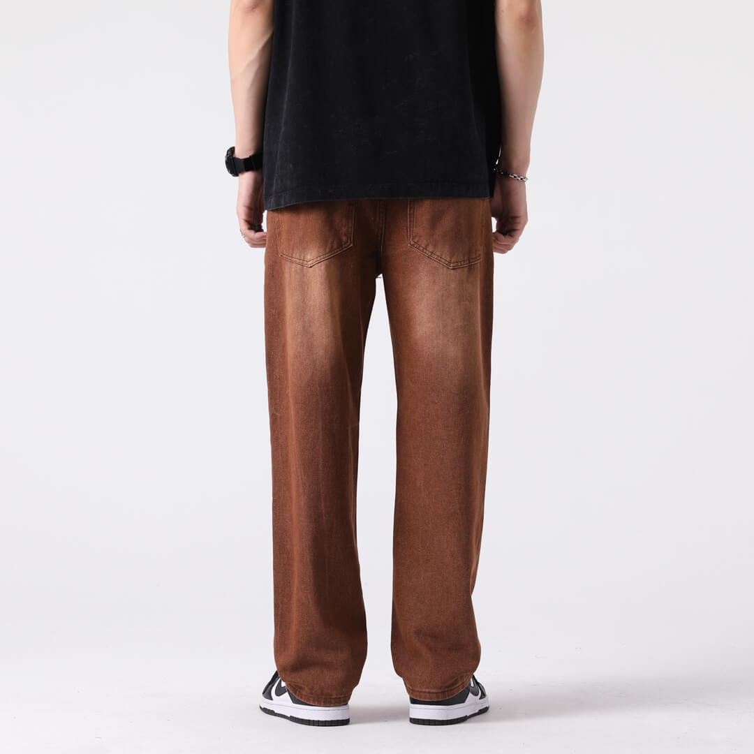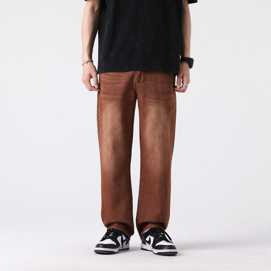 Take your denim 'fit up a notch with Nagare Washed Jeans. Made with washed denim, featuring a straight cut, retro style and unique whiskers pattern on the front. Available in timeless black and brown colors, these jeans will give you a vintage throwback vibe that's perfect for any occasion.