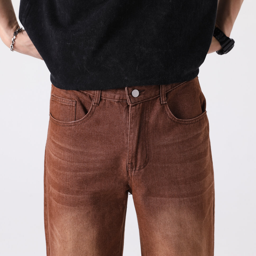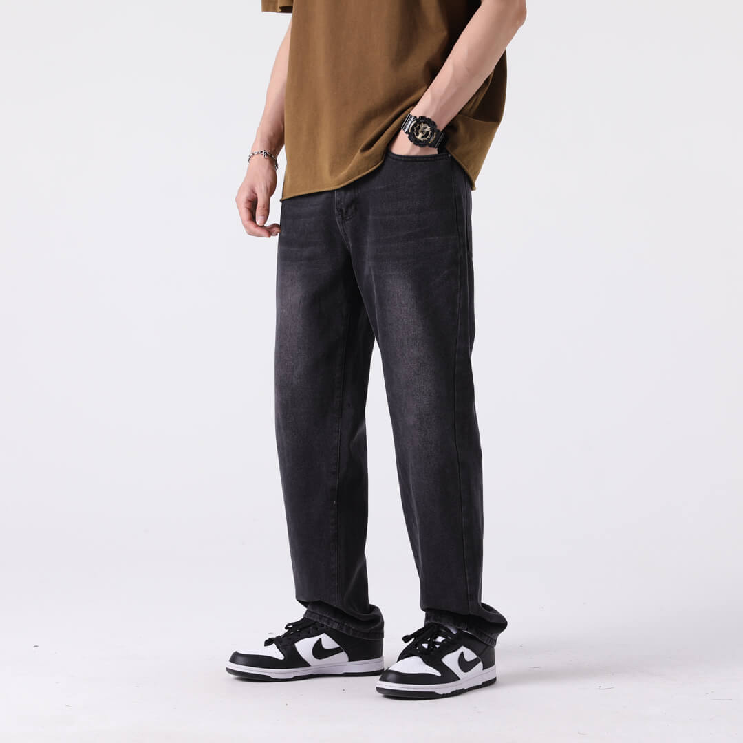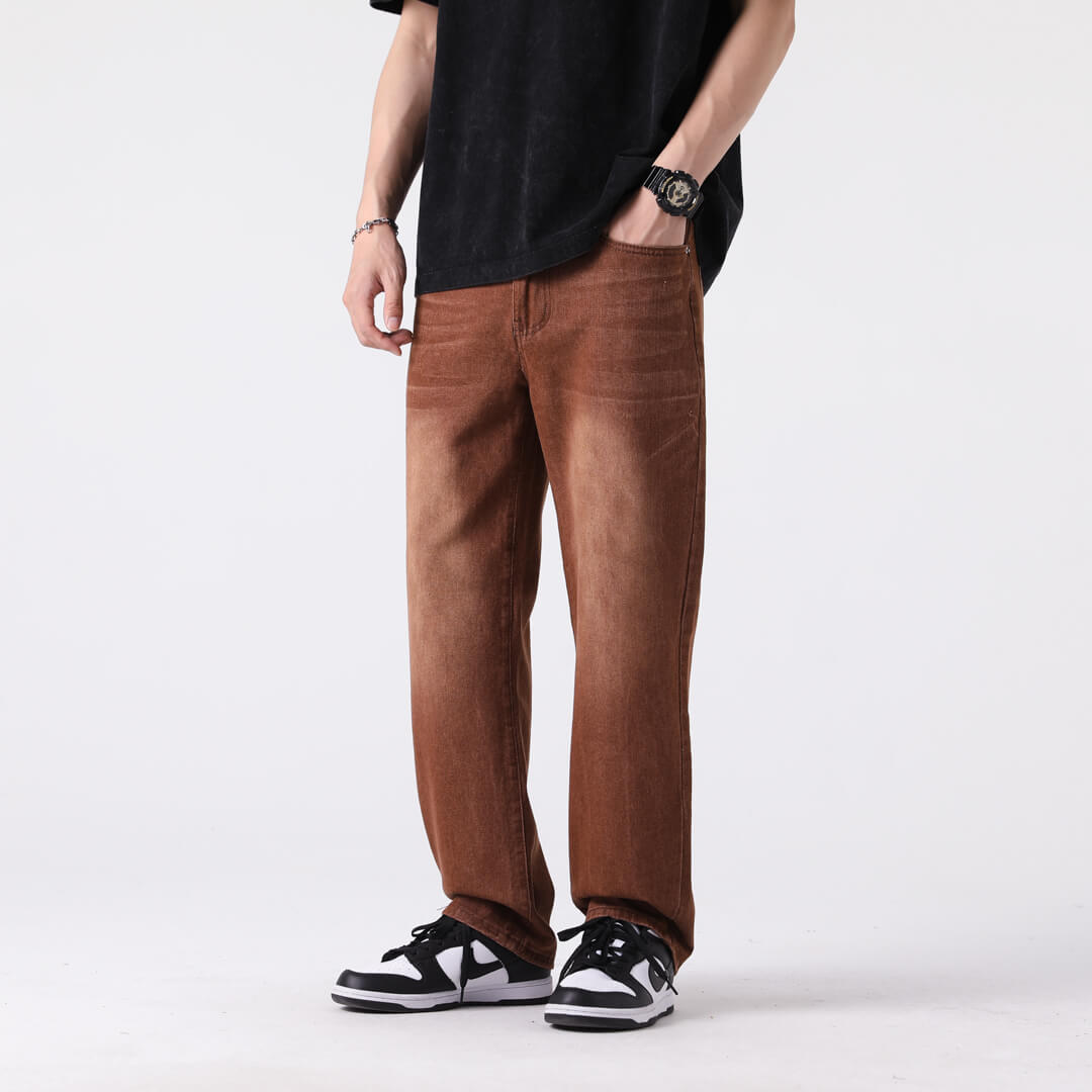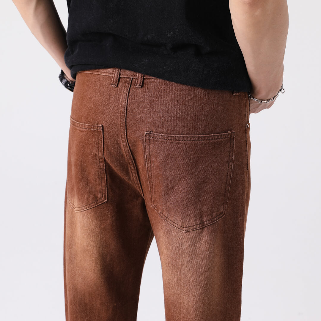 Take your denim 'fit up a notch with Nagare Washed Jeans. Made with washed denim, featuring a straight cut, retro style and unique whiskers pattern on the front. Available in timeless black and brown colors, these jeans will give you a vintage throwback vibe that's perfect for any occasion.