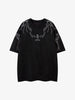 • Design Elements: Unique abstract graphic print on the front and sleeves, relaxed fit, round neck design