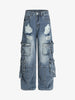 • Design Elements: Distressed details, multiple cargo pockets, wide-leg cut