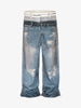 • Design Elements: Distressed details, wide-leg cut, belt included