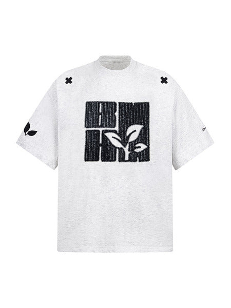 • Design Elements: Bold embroidered logo with plant motif, cross-shaped shoulder details