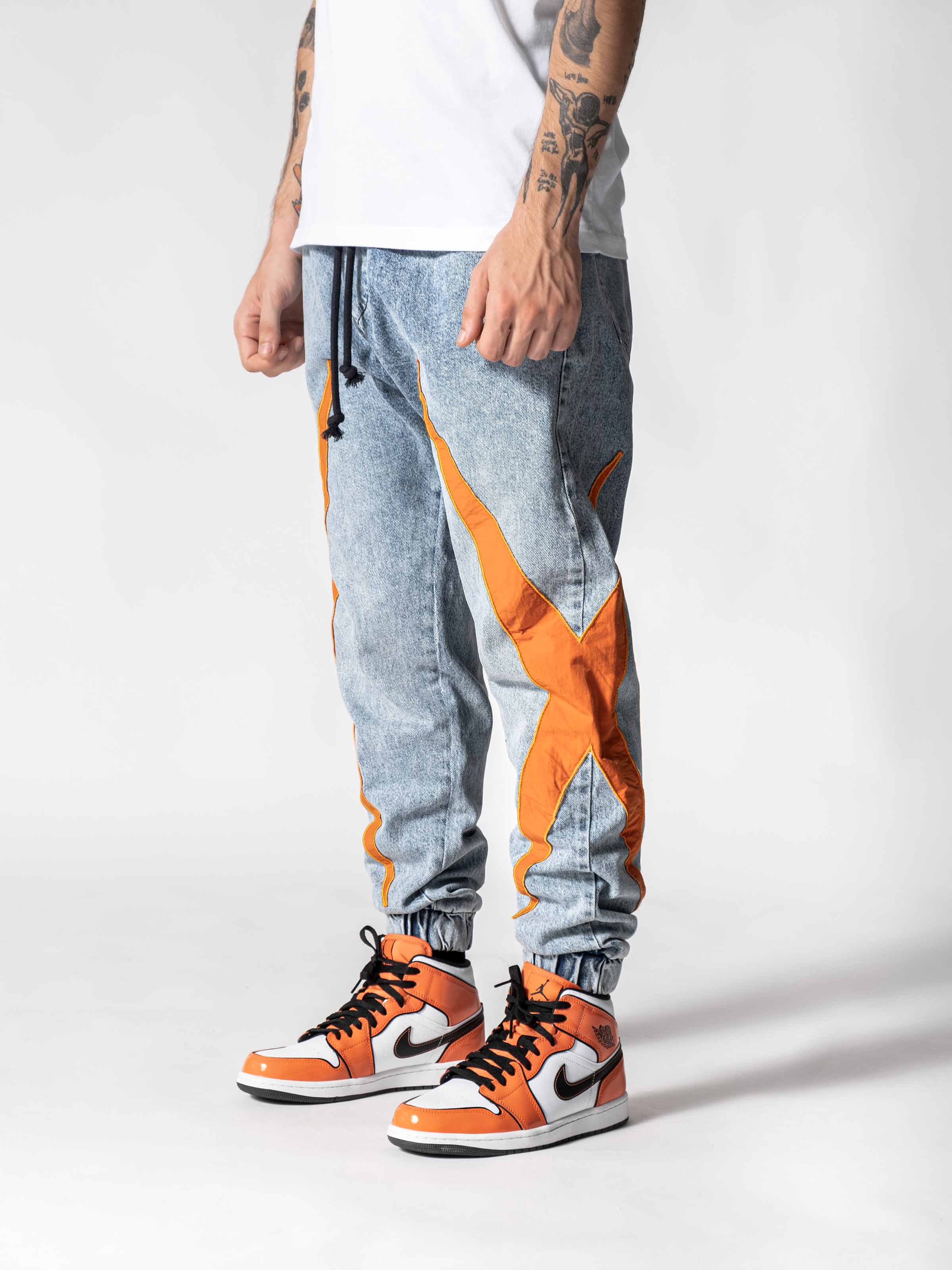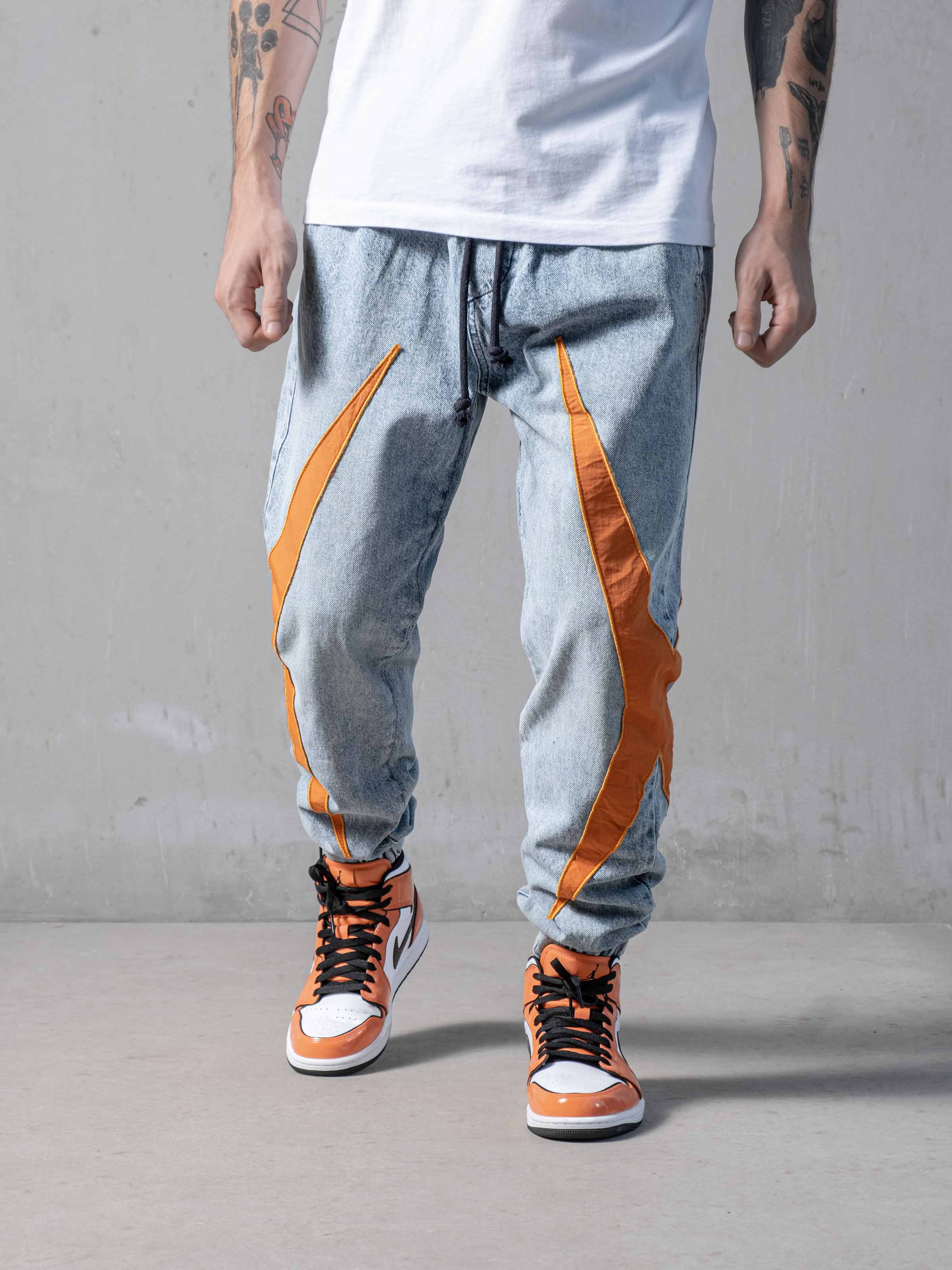 X Baggy Jeans made from breathable denim fabric. It has been designed with a baggy fit and Big Orange Xs on side of the legs. Besides, it is elasticized on waist and leg openings.