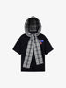Detachable Badge Hooded Plaid Cape T-shirt
