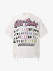 • Design Elements: Bold graphic print with vibrant colors, distressed details at the bottom hem