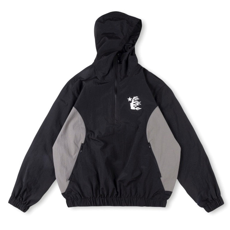 Vintage Nylon Jacket with contrast panels, and piping on collar. Features elastic cuff and waistband. Soft Tercel lining. Embroidery detailing.