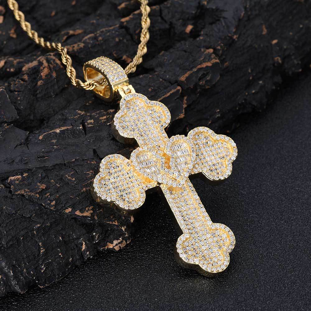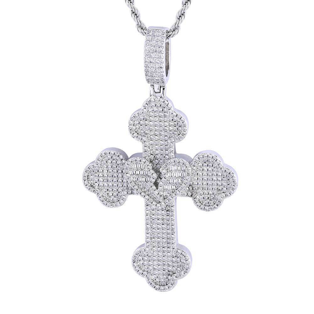 Men's Broken Heart Cross Pendant Necklace