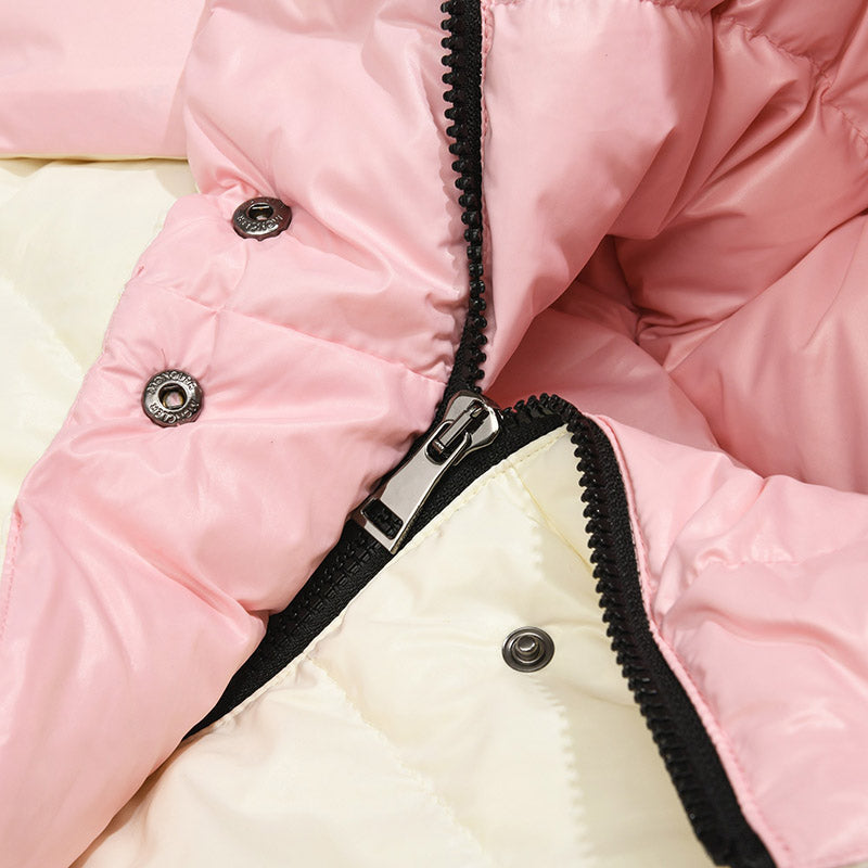 This down vest for women is crafted from nylon laqué and is characterized by its grid quilting that provides optimal warmth without feeling heavy. Contrast color lining adds a Pop feel to the timeless mid-season warmer.