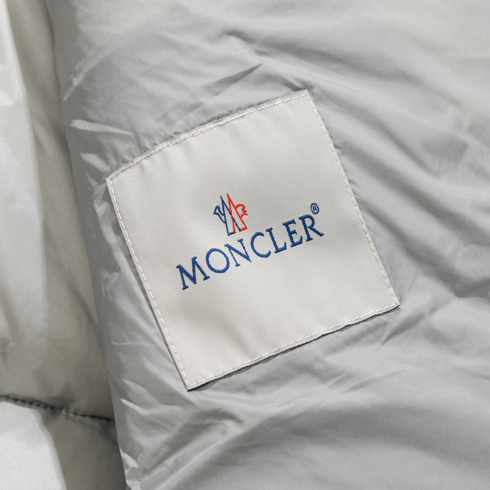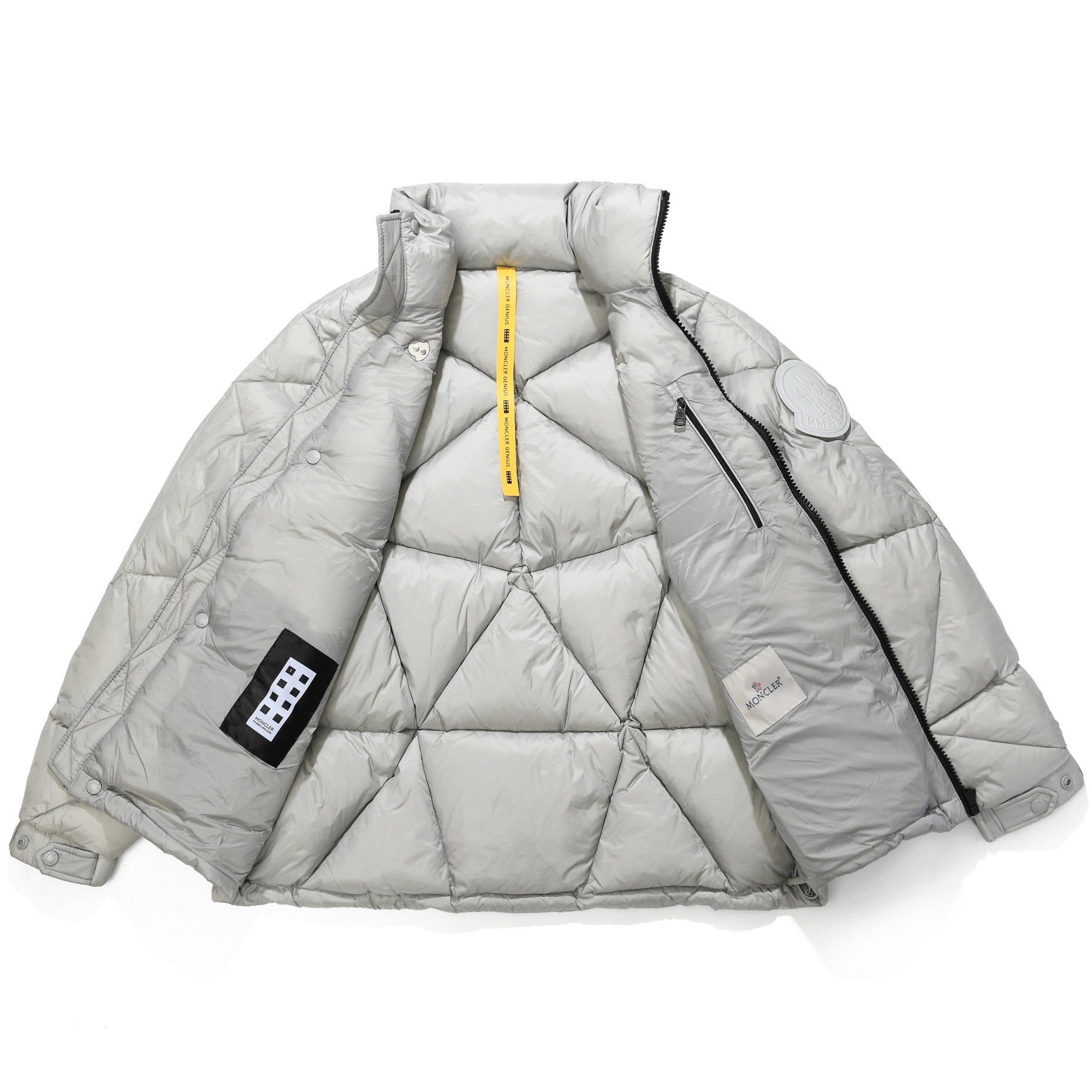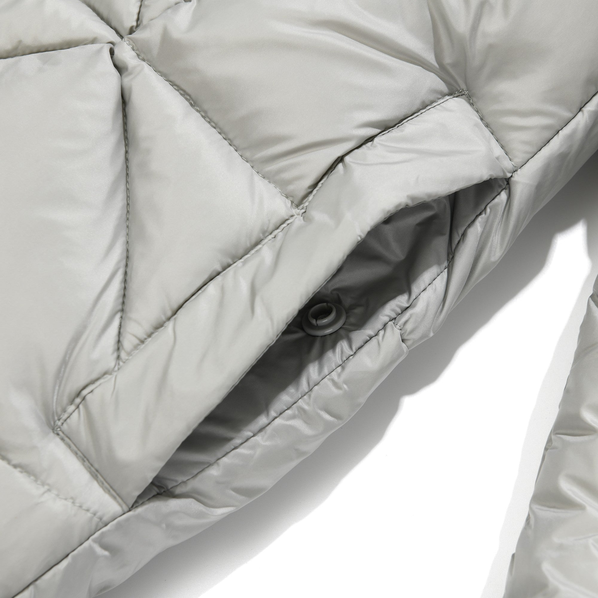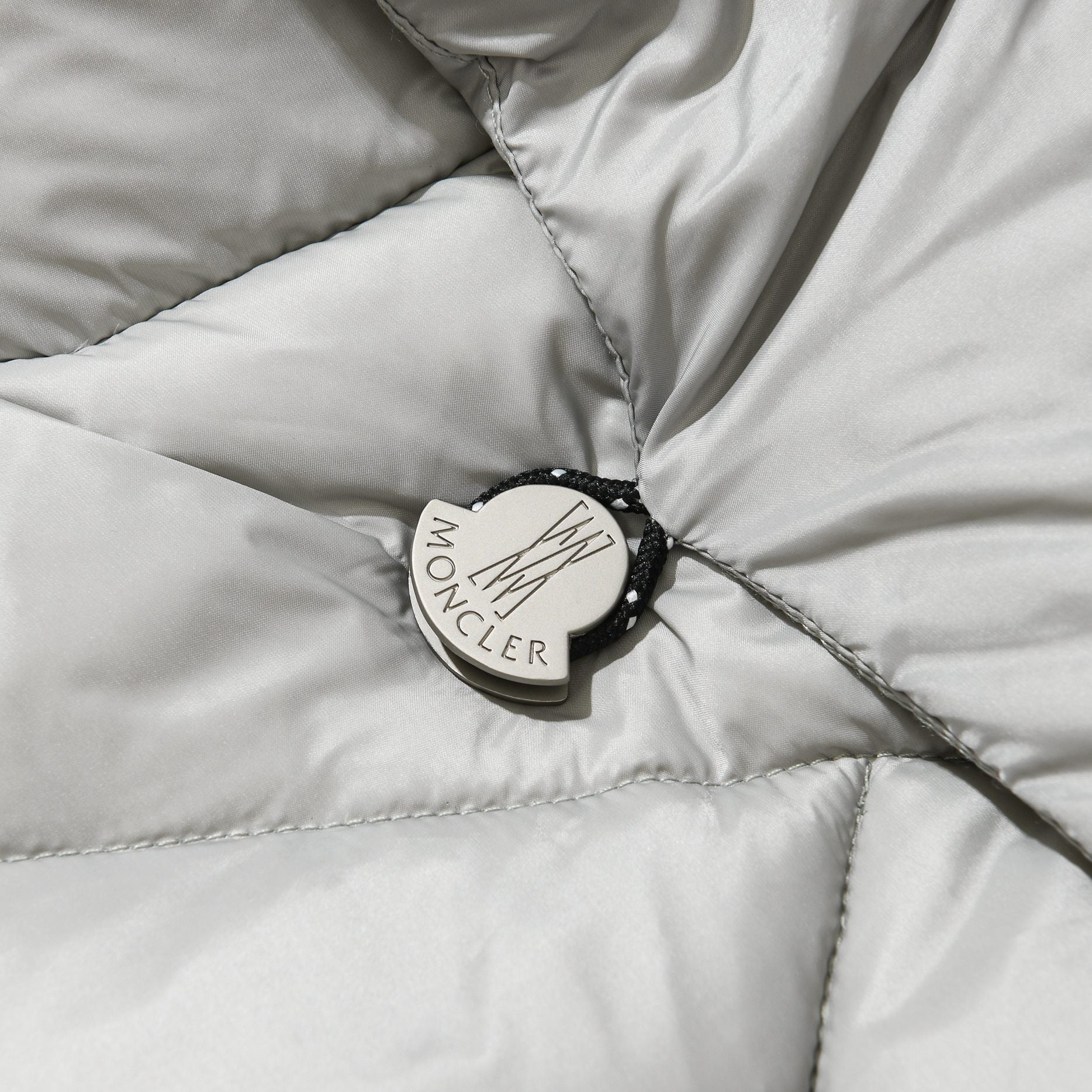 • Channeling Moncler's sporty spirit, the Solayan is a micro chic down jacket in a strong boxy shape. The short puffer is adorned by tricolour stripes on the sleeve, a seasonal adaptation of a brand signature. A practical pull-out hood finishes the design.
