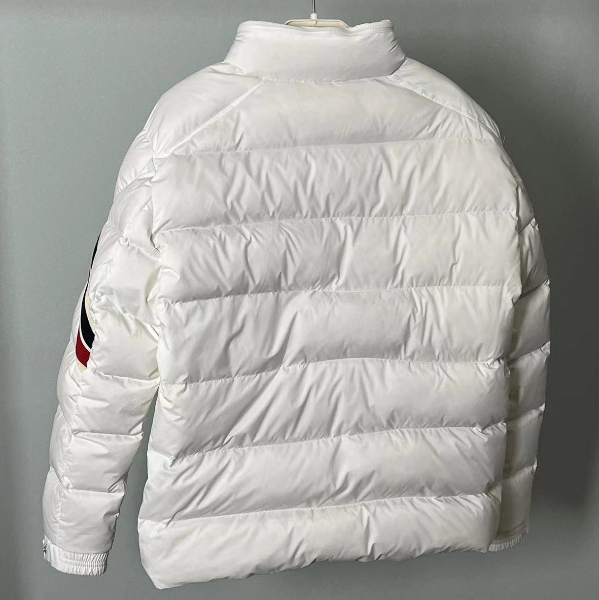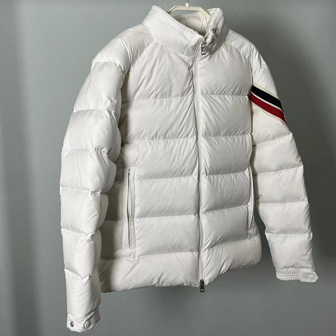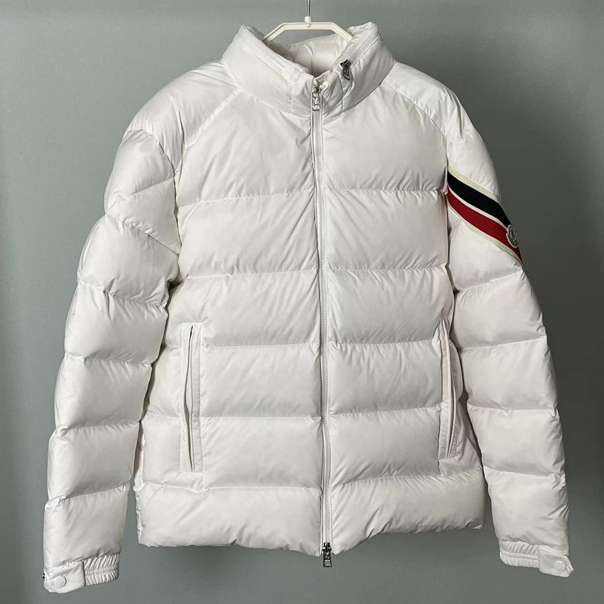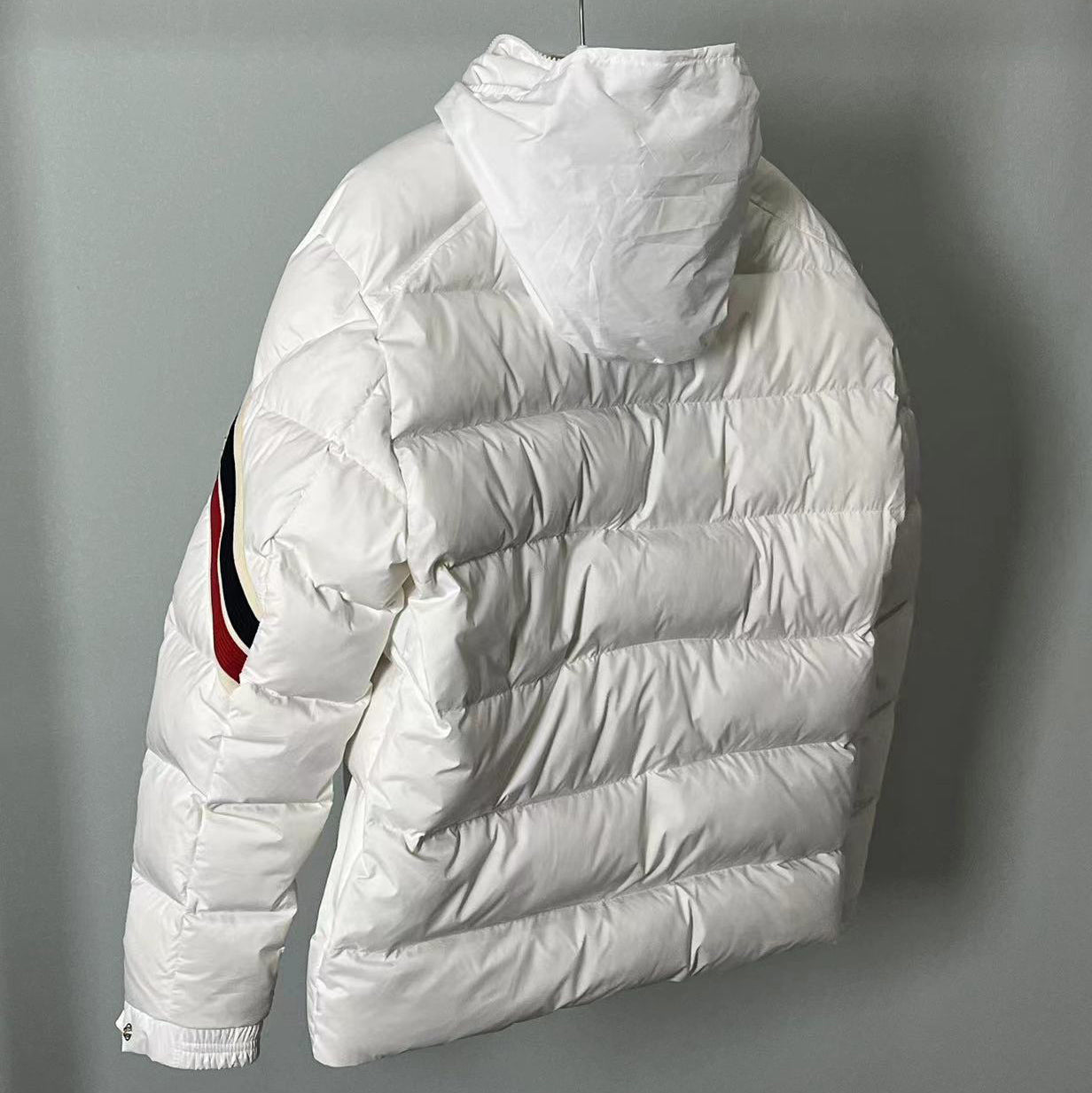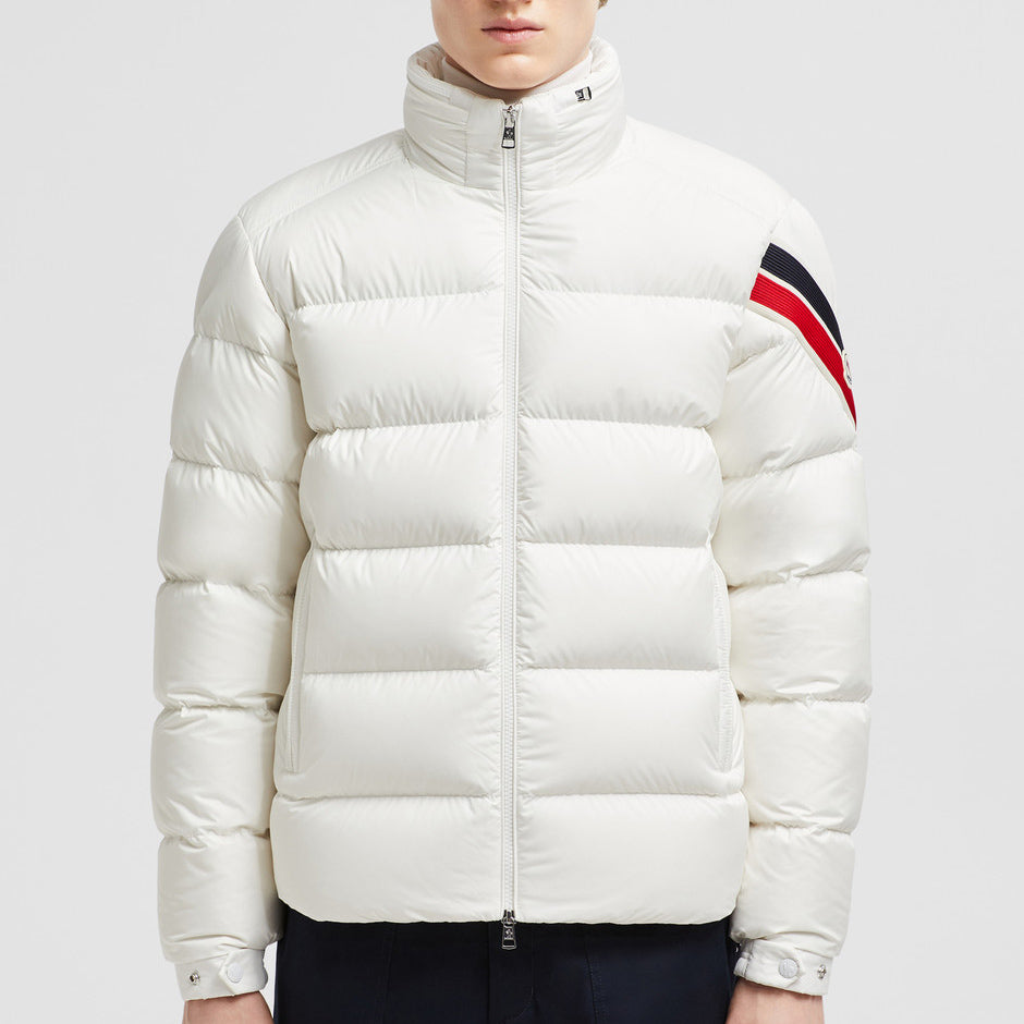 • Channeling Moncler's sporty spirit, the Solayan is a micro chic down jacket in a strong boxy shape. The short puffer is adorned by tricolour stripes on the sleeve, a seasonal adaptation of a brand signature. A practical pull-out hood finishes the design.