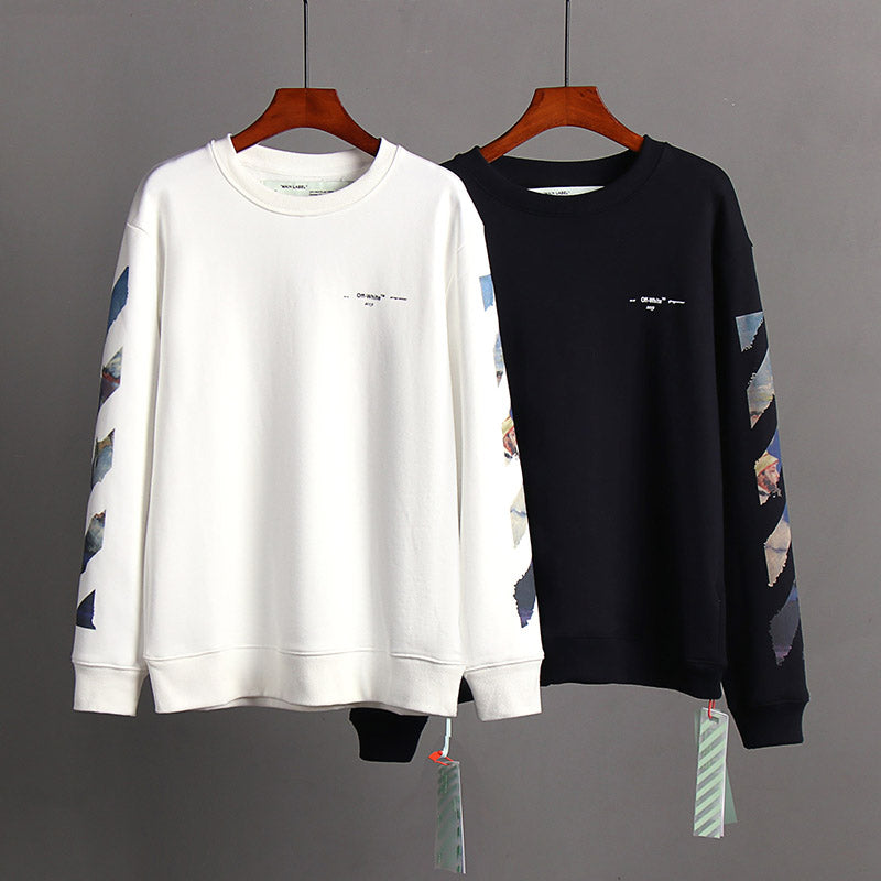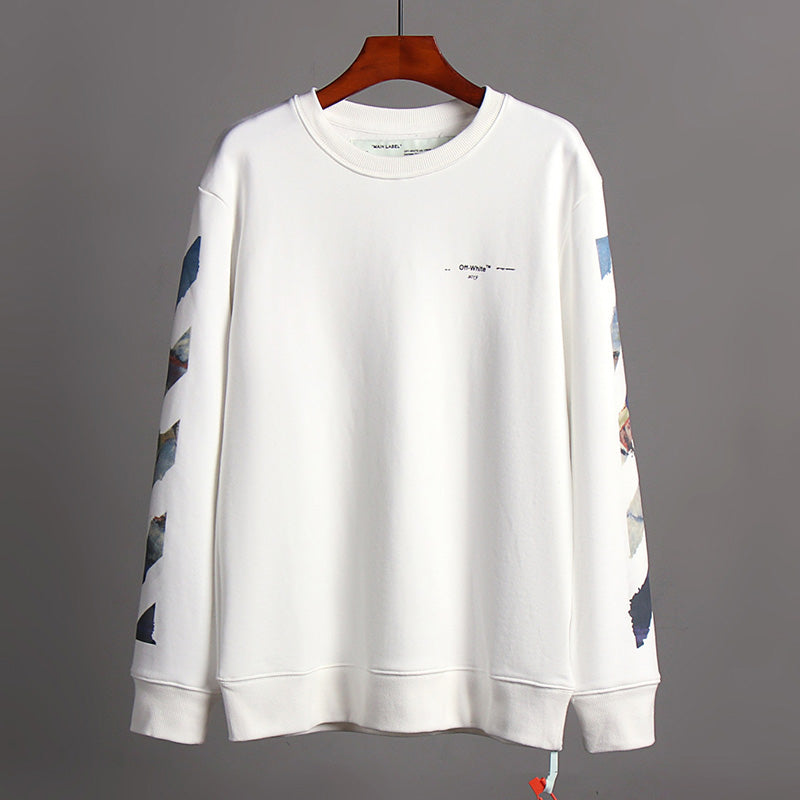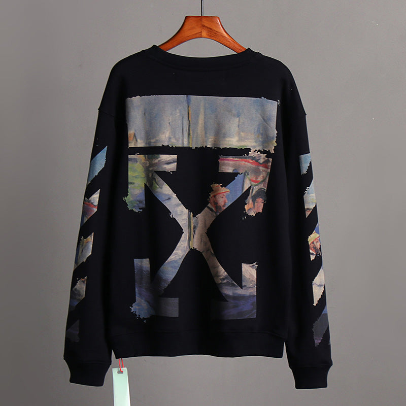 OFF WHITE Classic Monet Oil Painting Arrow Round Neck Pullover Sweatshirts