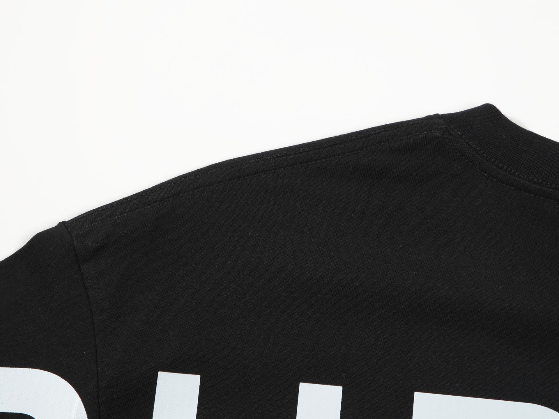 Paint-streaked logo art splashes and smears randomly on a T-shirt made of inky-black cotton in a fit that slouches like a comfortable old favorite.