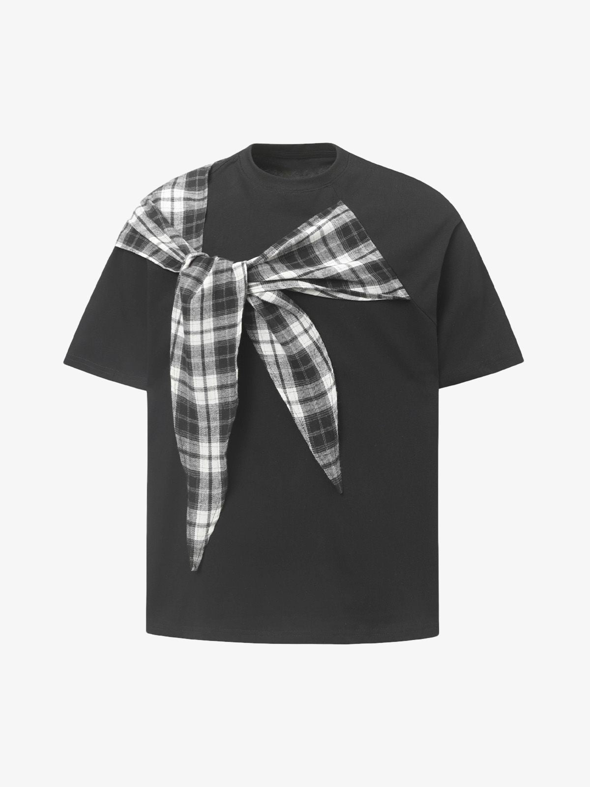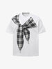 • Design Elements: Plaid scarf necktie accent, embroidered logo detail, classic crew neck