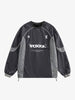 • Design Elements: Contrasting sleeve panels, bold front logo print, adjustable drawstrings at the hem