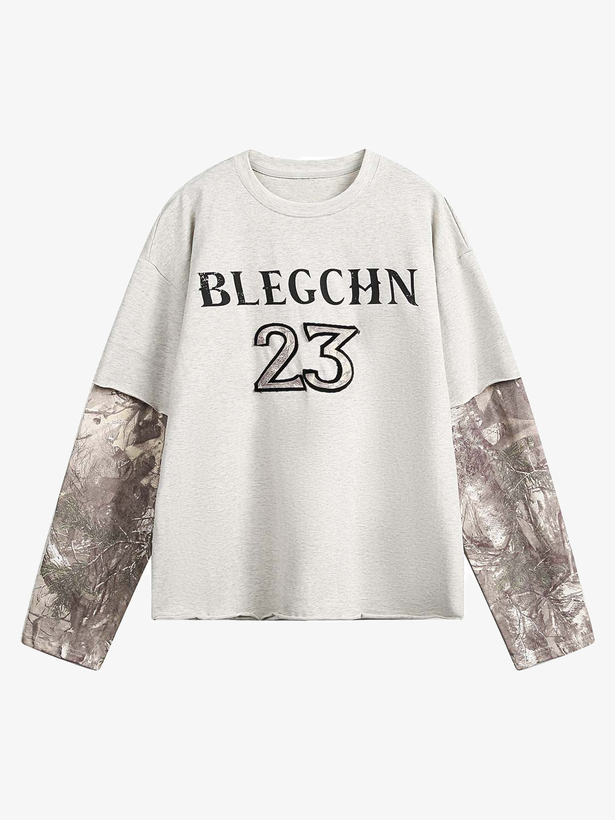 Faux Two-Piece Print Long-Sleeve T-shirt