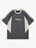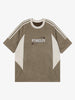 Suede Contrast Color Spliced Letter Embroidery Oversize T-shirt - 2462
